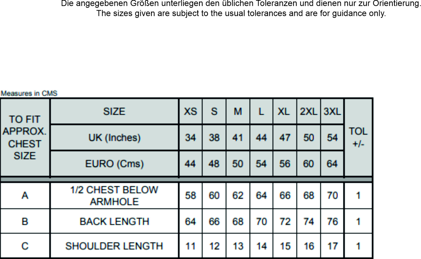 Größentabelle