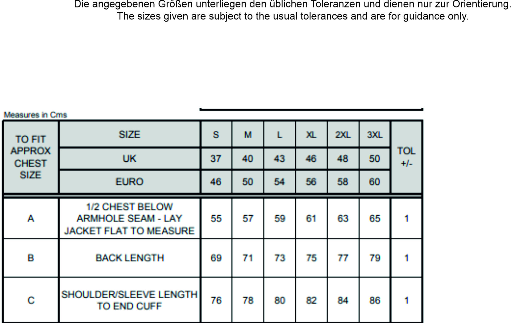 Größentabelle
