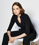 • V-Ausschnitt mit Einfassung aus demselben Stoff