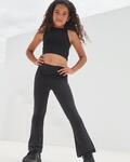 Kids flared leggings, Soft-touch fabric, Self-fabric waistband with internal elastic band, Twin-needle stitched hem, Gusset panel at crotch, Front and back rise seams, Brand free for easy re-branding, Re-sealable, recyclable bags, made from 100% recycled plastic, Matches womans ST428