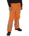 Conforms to EN ISO20471 Class 1 EN343, RIS-3279-TOM approved for railway industry, 100% waterproof polyester with oxford PU coating, Two 5cm wide reflective bands around lower legs, Elasticated waistband, Stitched and taped seams, Snap buttons on the bottom for adjustment