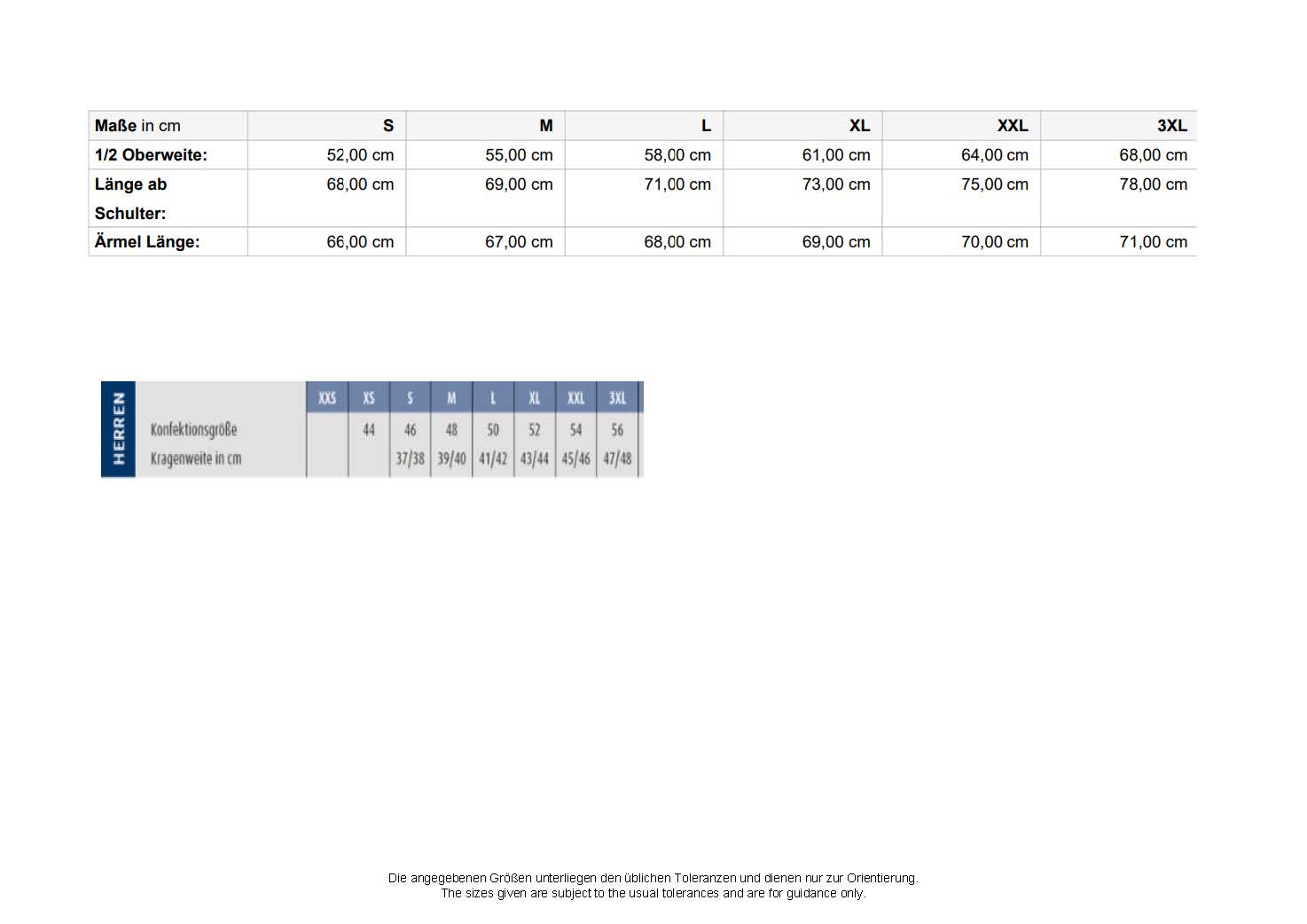 Größentabelle