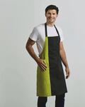Colour contrasting vertical panel, Sliding adjustable buckle on self fabric neck band, Two front slanted pockets, Self fabric ties, Width: 72cm, Length: 86cm, Pocket: 16x24cm